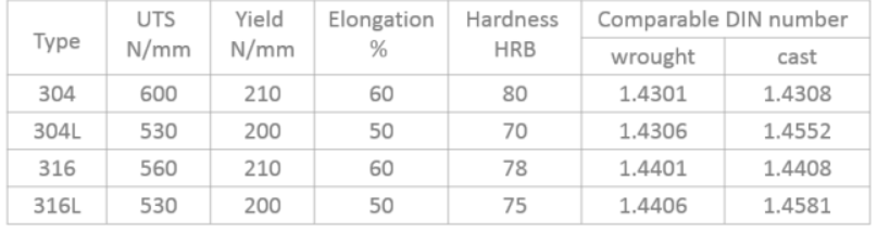 作為低碳的304鋼,在一般狀態(tài)下,其耐蝕性與304剛相似,但在焊接后或者消除應(yīng)力后,其抗晶界腐蝕能力優(yōu)秀;在未進行熱處理的情況下,亦能保持良好的耐蝕性,使用溫度-196℃~800℃。